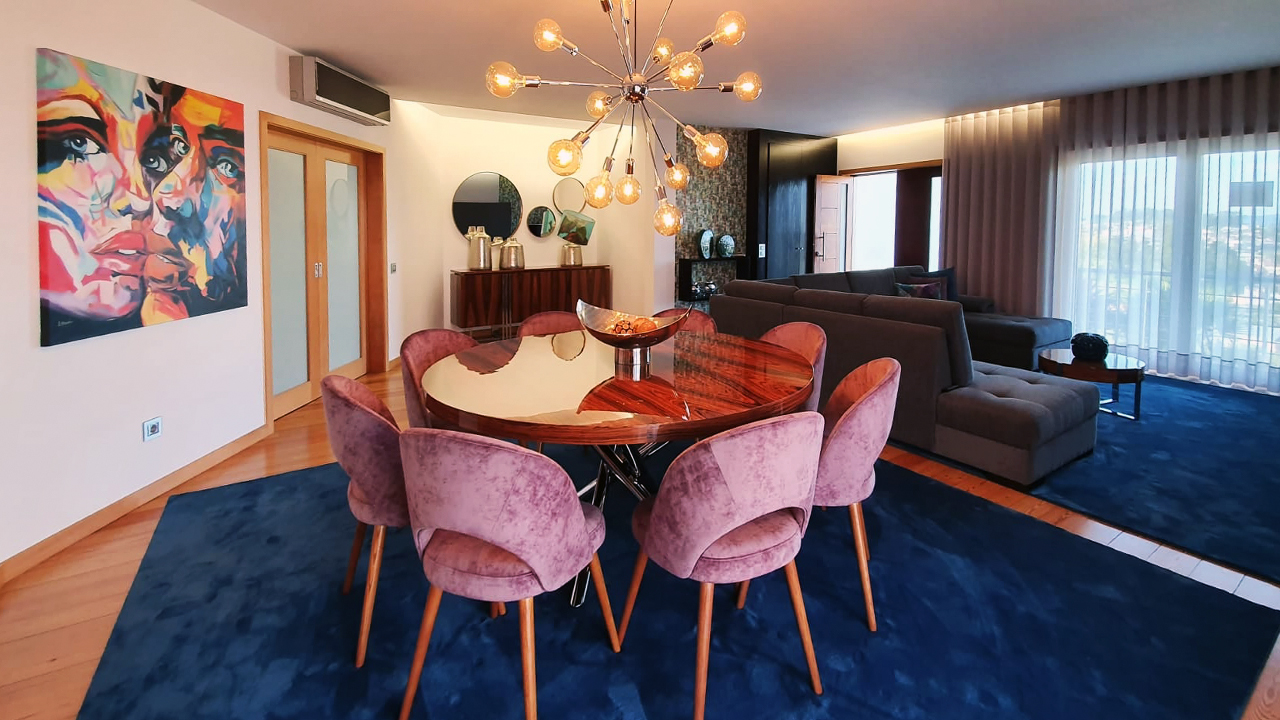 Decoração Integral de Sala de Estar e Jantar contíguas.