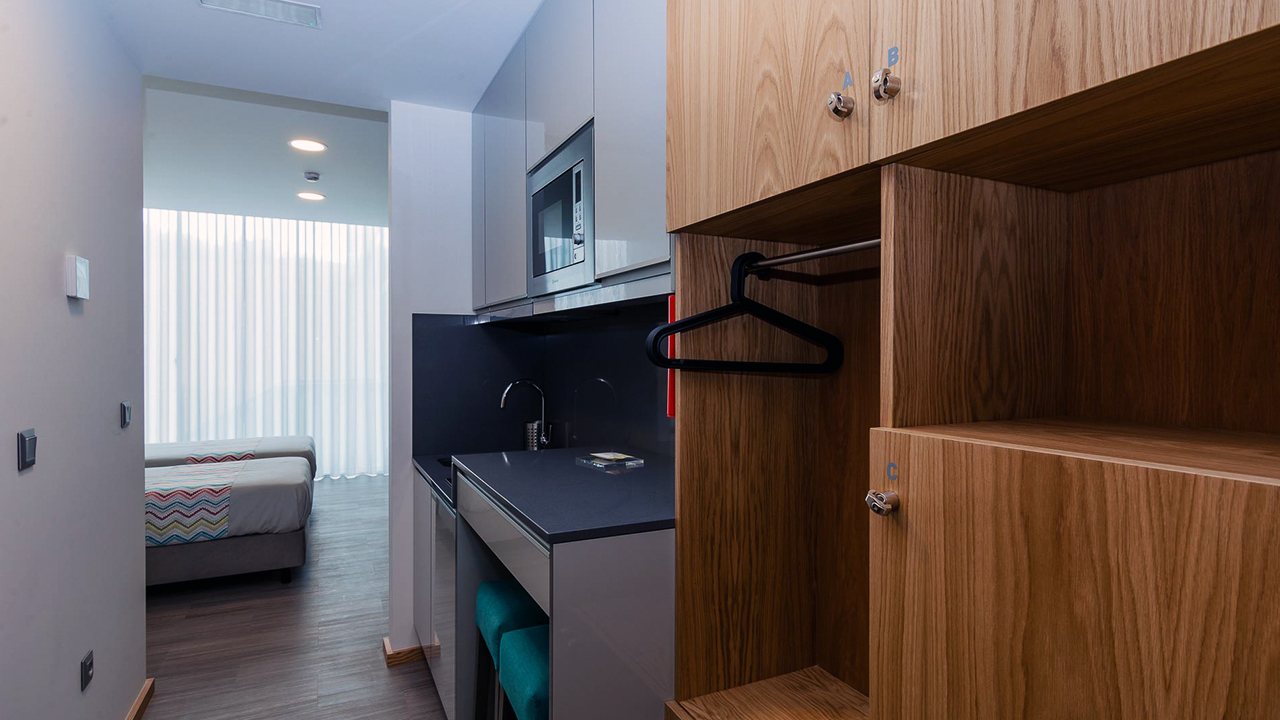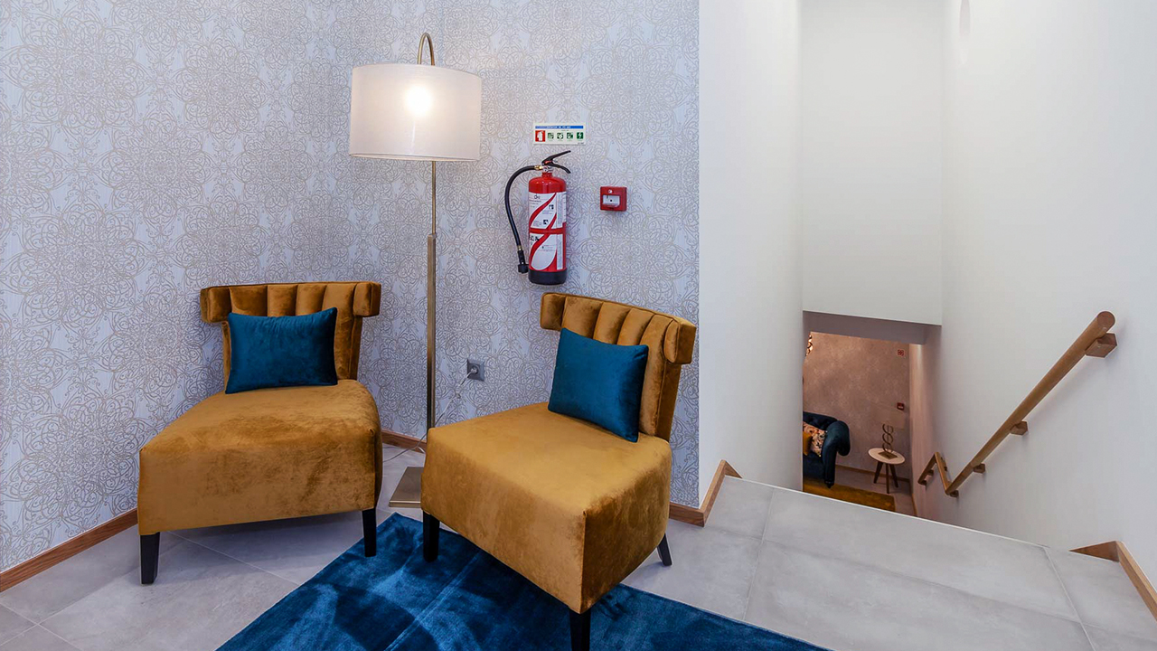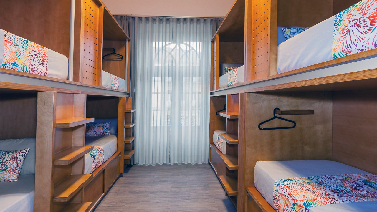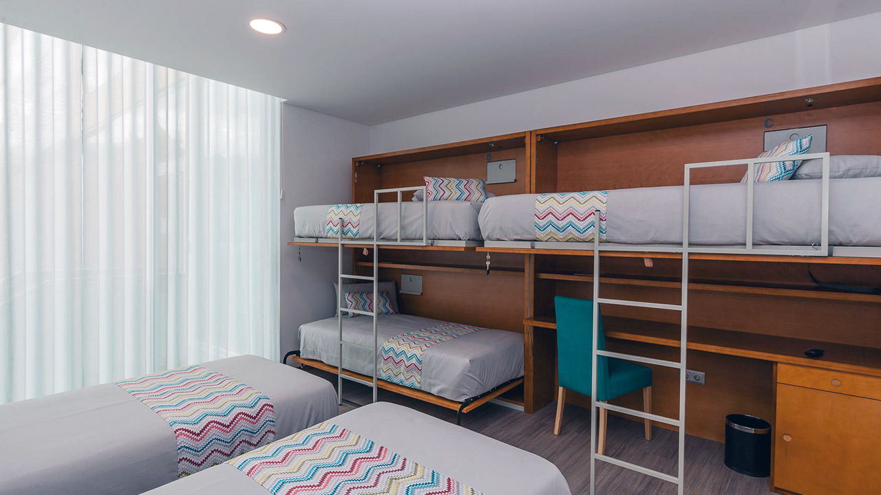 Foram usados materiais modernos, cada suite ou cada quarto partilhado tem uma imagem que lhe dá o nome.