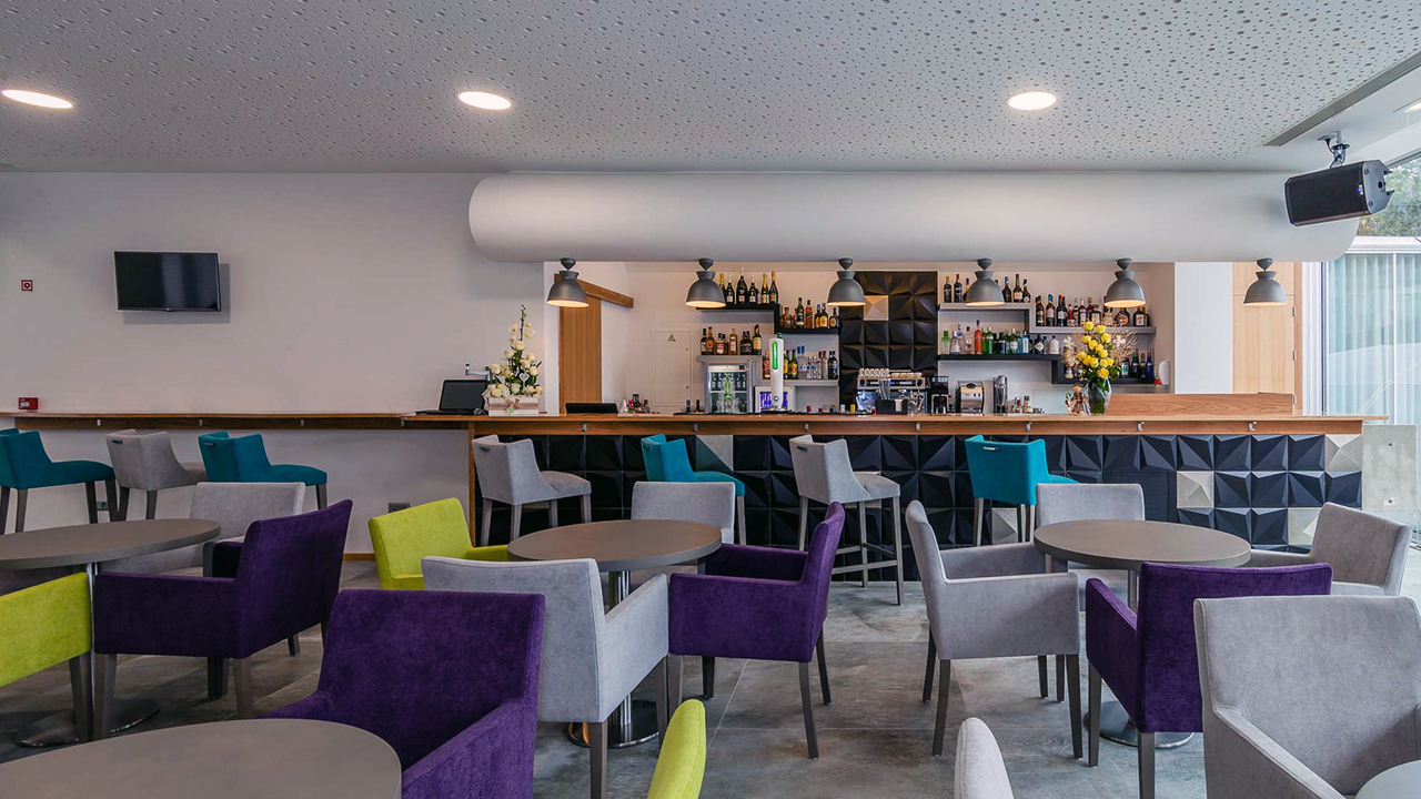 O bar do hostel foi imaginado para servir os hóspedes mas também todos os que visitam a Praça Velha de Santa Maria da Feira, pois está aberto ao publico, no verão também podem desfrutar de uma esplanada interior